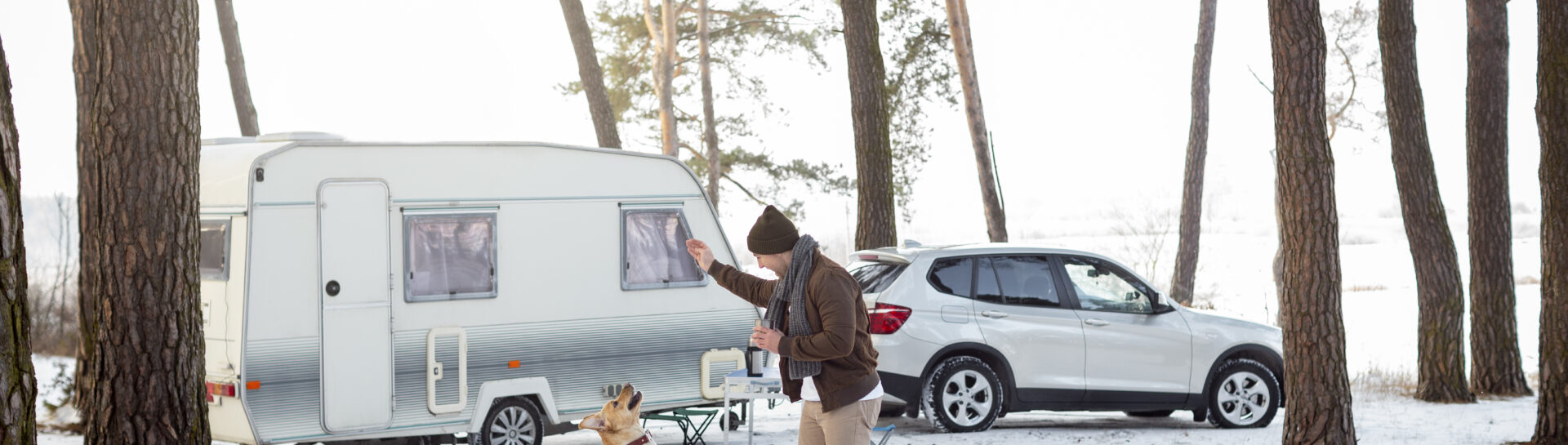 Halen en brengen van de caravan